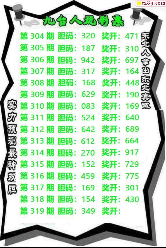 九台胆码2025319期3d图谜